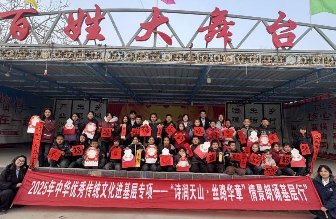 赵霞老师主持的自治区社科普及项目“诗润天山·丝路华章——情景朗诵基层行”,以乌鲁木齐为起点、和田为核心,开展多场沉浸式文化活动,成为学校服务南疆发展的生动实践。
